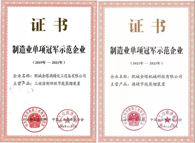 11月8日,工信部發(fā)布《關(guān)于制造業(yè)單項冠軍第六批遴選和第三批通過復(fù)核企業(yè)名單》。作為第三批制造業(yè)單項冠軍示范企業(yè),金塔集團酒精化工設(shè)備公司順利通過復(fù)核。此前,2020年金塔集團金塔科技公司獲得第五批國家制造業(yè)單項冠軍示范企業(yè)。